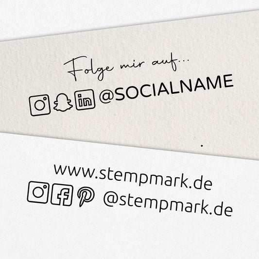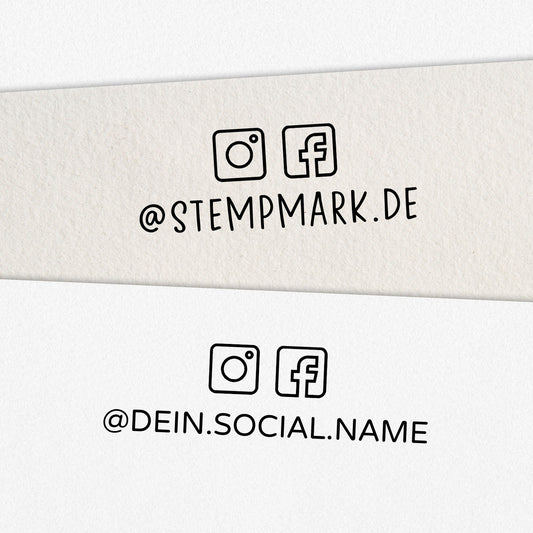 Social Media Stempel mit 2 Icons und zusätzlicher Textzeile als Holzstempel