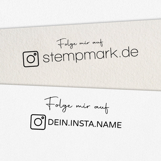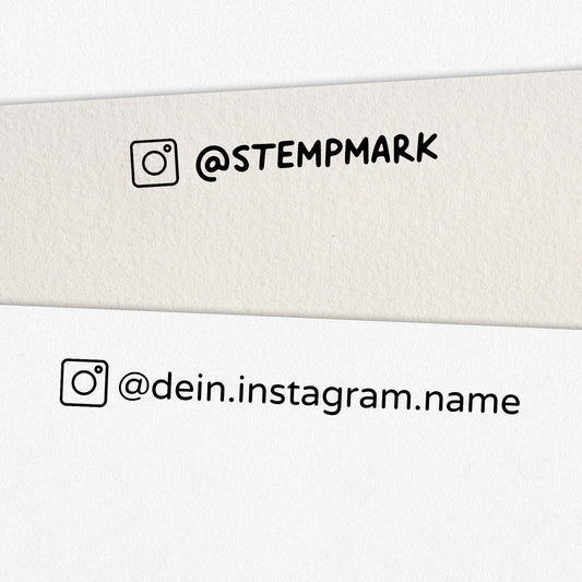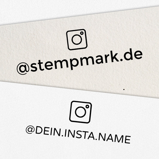 Personalisierter Instagram Stempel mit zusätzlicher Textzeile als Holzstempel
