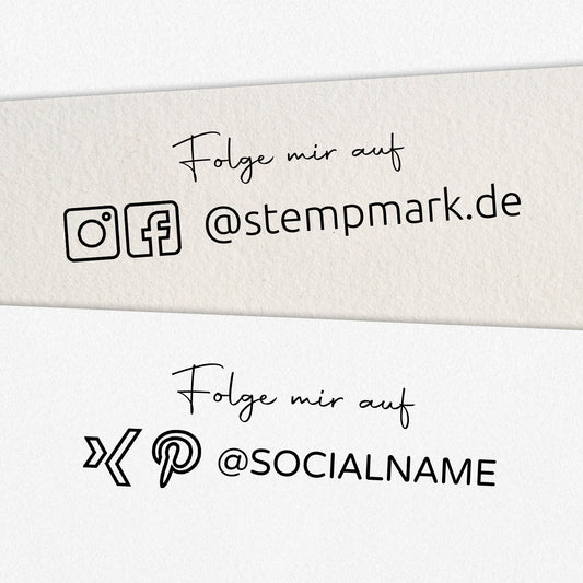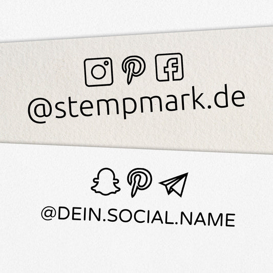 Personalisierter Social Media Stempel mit 2 Icons oben als Holzstempel