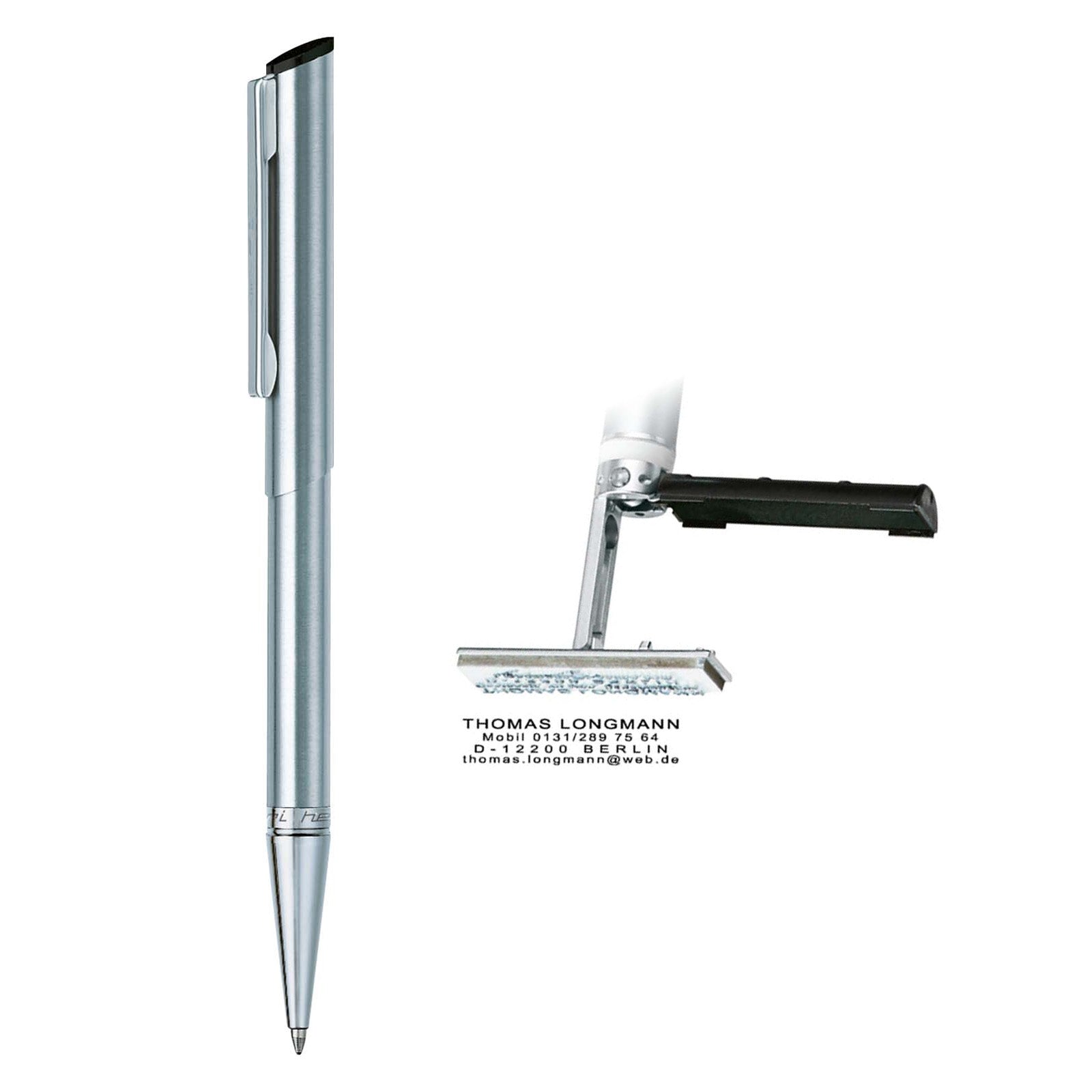Das edle Metallgehäuse mit verchromten Beschlägen verleiht dem Stempelschreiber nicht nur ein ansprechendes Aussehen, sondern auch eine robuste Langlebigkeit.