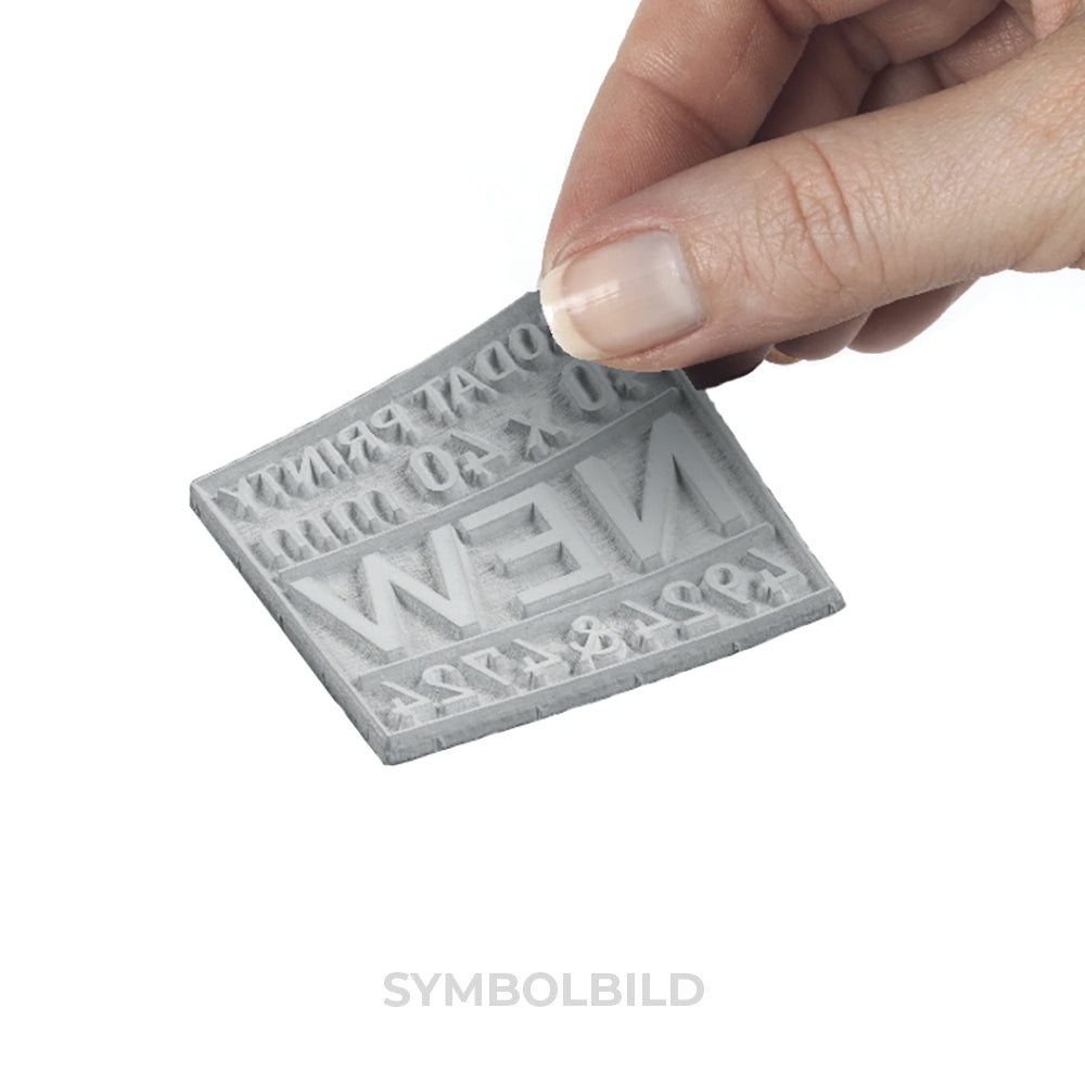 Zum Wechseln der Stempelplatte Ihres Colop Printer 45 einfach die alte Textplatte abziehen und die neue Ersatztextplatte einkleben.